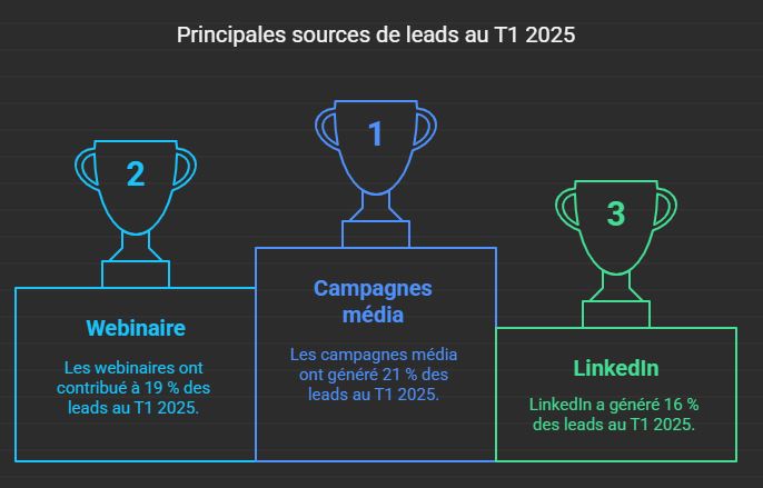 Test 1. On a saisi le texte « Top des sources de leads au T1 2025 : Campagnes média 21 % / Webinaires 19 % / LinkedIn 16 % ». Voici le résultat sans aucune modification manuelle.